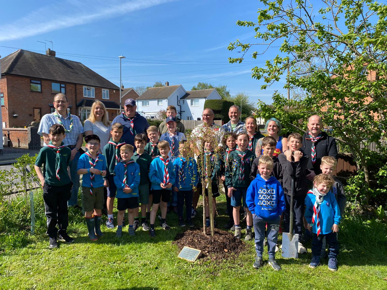 As part of the Queen’s Green Canopy to mark her Platinum Jubilee and in collaboration with the East Leake Parish Councils Tree Warden, children from the 2nd East Leake Scouts and their family and friends joined together in planting 120 hedge row saplings and a Cherry tree on the Oldershaw Park. A Birch tree was also planted on Meadow Park.